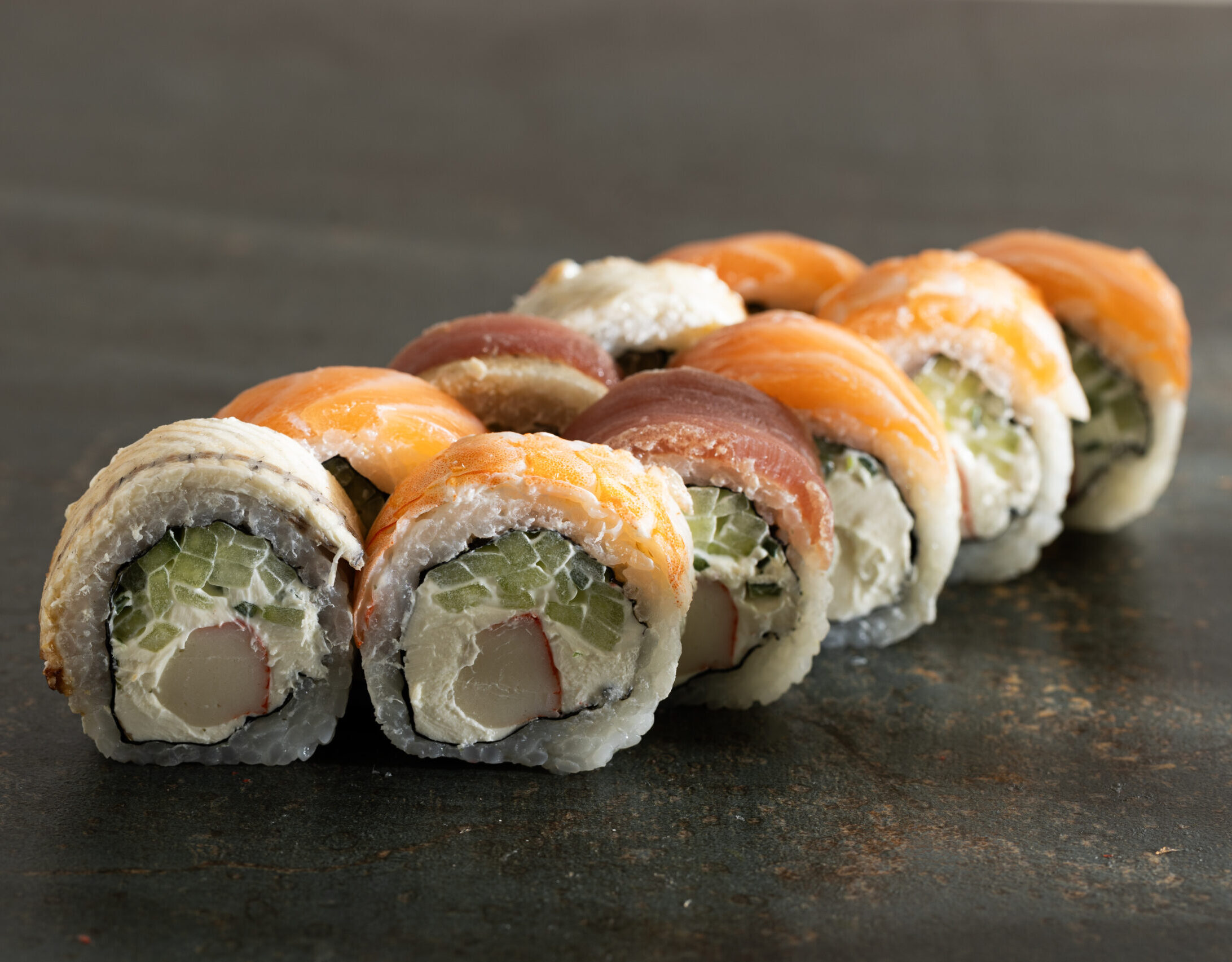 Łosoś,serek Philadelphia,ogórek,ser Cheddar
