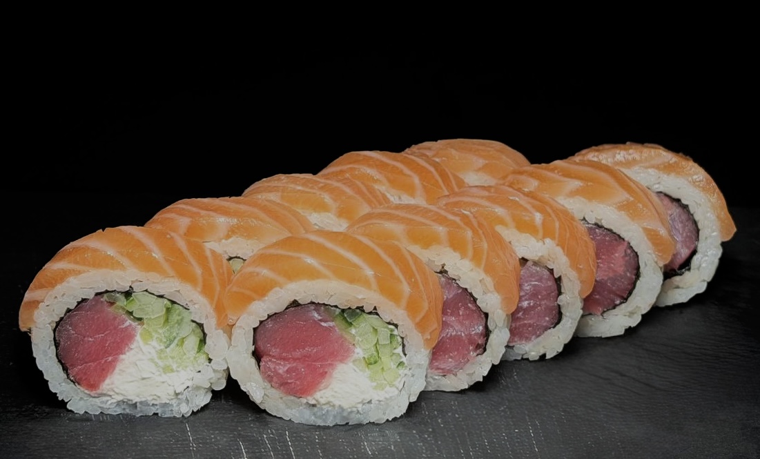 łosoś, tuna, serek, ogórek