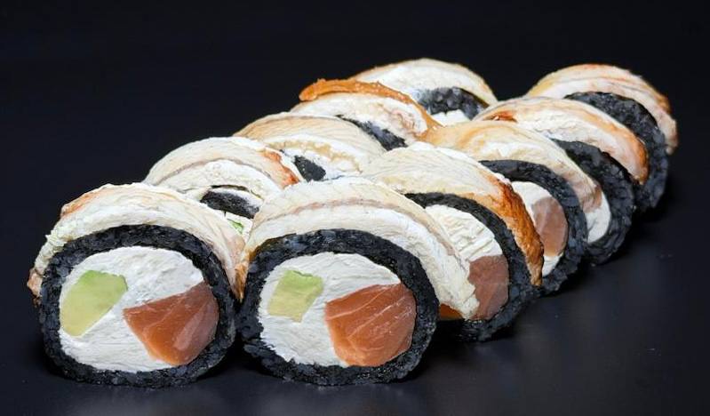 paluszek krabowy, serek, oshinko, ogórek, owijane w dwa gatunki ryb