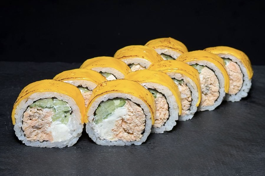 bonito, grillowany łosoś, ogórek, tobiko, sos kobe