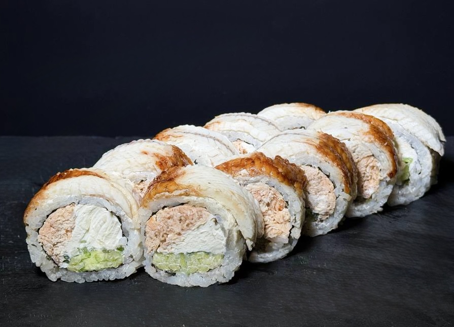 Łosoś grillowany,serek Philadelphia,ogórek,węgorz